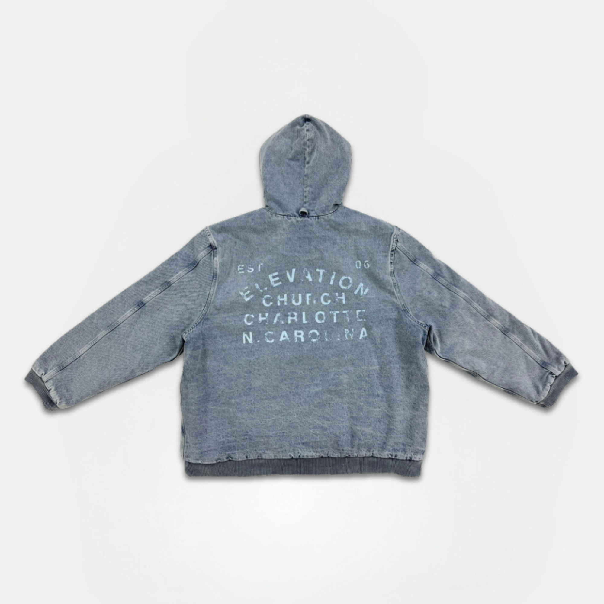 This relaxed, very oversized denim jacket is crafted from 100% non-stretch cotton denim for a durable, lived-in feel. Designed for effortless layering, it features a zippered front for easy on and off, a hood with adjustable drawcord, and long sleeves finished with ribbed cuffs and hem. A split kangaroo pocket and interior chest pocket add everyday functionality. This style runs intentionally oversized—if you’re between sizes, we recommend sizing down for the best fit.
